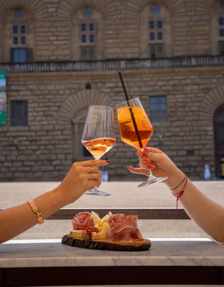 Un momento di gusto e convivialità che diventa ancora più speciale con la vista su Palazzo Pitti.